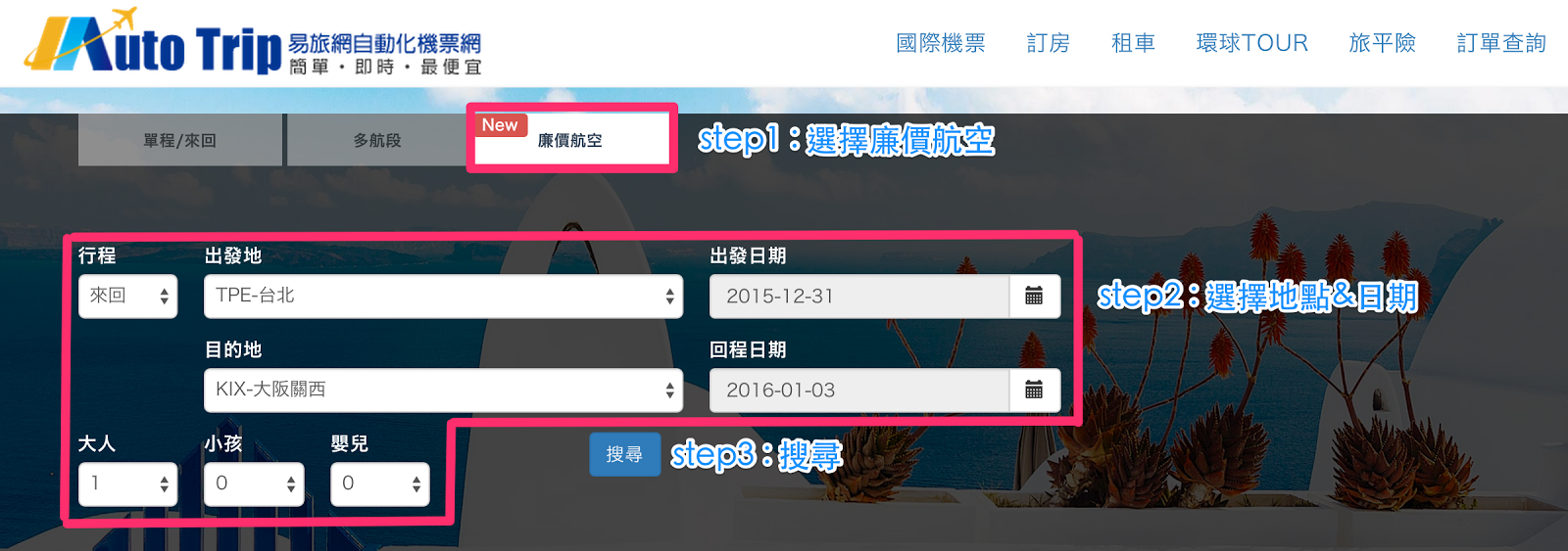 AutoTrip廉價航空入口