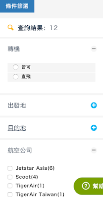 若您覺得呈現的資料太多,也可透過右側的條件篩選按鈕,快速找到您要的航班。